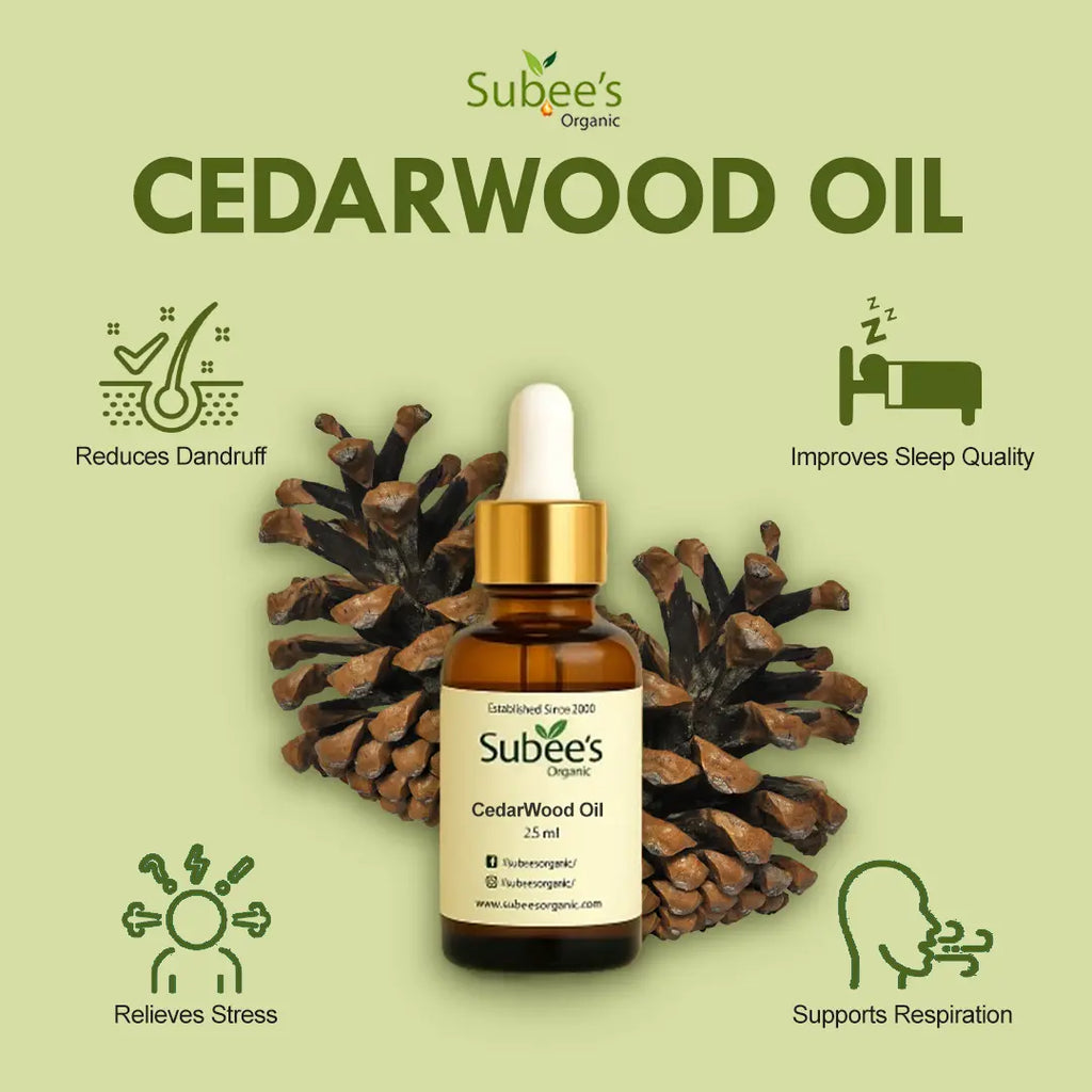 Subee’s Organic Cedarwood Oil is a grounding, earthy essential oil that calms the mind and purifies the body. With natural antibacterial, anti-inflammatory, and astringent pr...