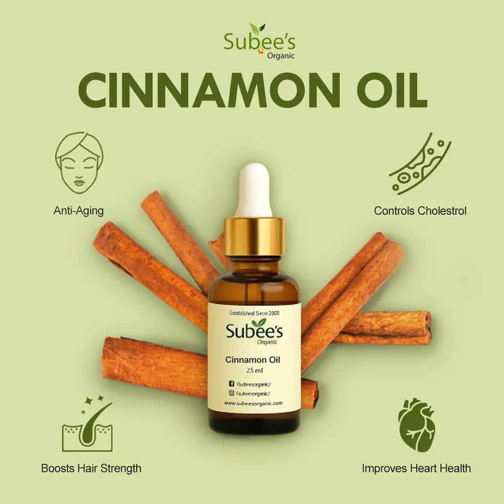 Subee’s Organic Cinnamon Oil is a powerful and aromatic essential oil known for its antibacterial, antifungal, and antioxidant-rich profile. Extracted from the bark of cinnam...