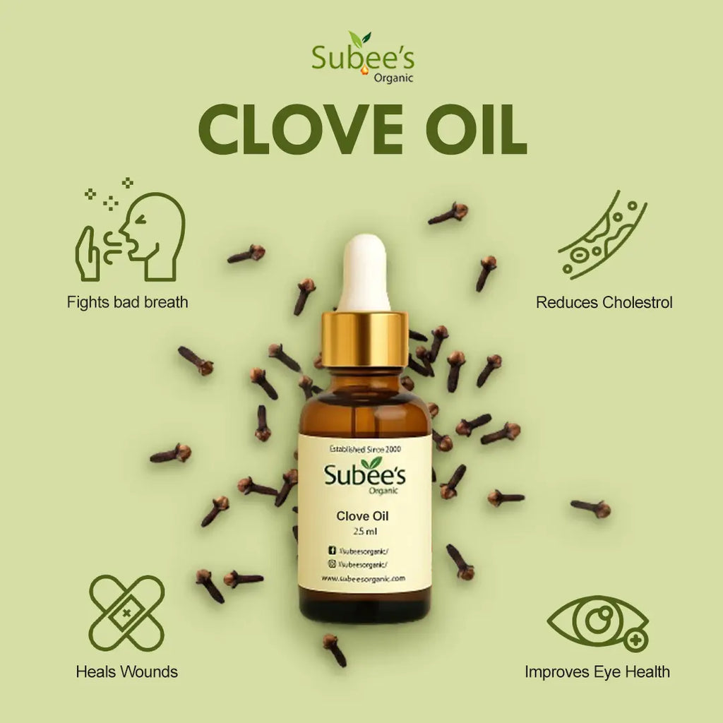 Subee’s Organic Clove Oil is a powerhouse essential oil loaded with eugenol – a natural compound known for its powerful antibacterial, antiviral, and pain-relieving propertie...